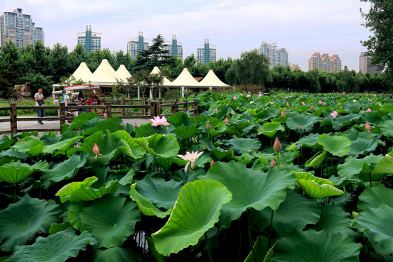 邯郸龙湖公园是以植物造景为主,以“水林景色”为特色的开放式生态休憩公园。盛夏来临,荷池里的荷花竞相开放,人们纷纷与荷花合影拍照留念,享受夏日里的荷香。