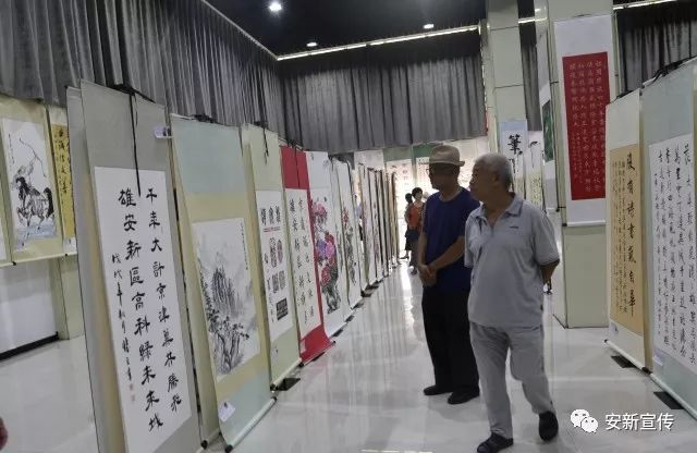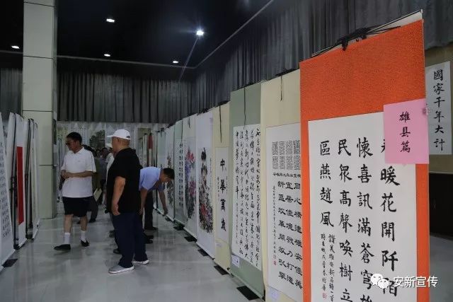 “七一”临近,为深入学习宣传贯彻党的十九大精神,庆祝建党97周年、改革开放40周年和庆祝雄安新区设立一周年,进一步弘扬雄安传统文化。6月26日,雄县、安新、容城三县老干部局和老年书画研究会、老年大学在安新县白洋淀文化广场联合举办了以“颂党恩,展望雄安未来发展”为主题的大型书画展。