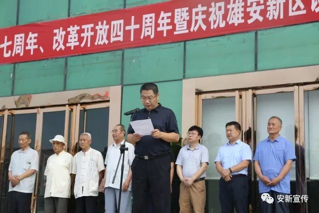 安新县委常委、组织部长、统战部长黄文涛同志在书画展开幕式上发表了致辞,他说:“这次书画展,是雄安老同志老有所学、老有所乐、老有所为的集中体现,是雄安三县书画界的交流和融合。我相信,通过这次书画展的举办,对提升三县文化品位、丰富群众文化生活、繁荣文化事业、助力雄安新区建设起到积极地促进作用。同时,希望广大书画爱好者和老年朋友们以此为契机,虚心交流,诚心学习,创作出更多、更好的作品,助力雄安新区文化艺术的繁荣和发展。”