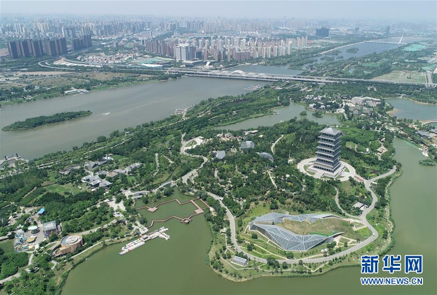 西安浐灞生态区内的西安世博园(6月21日无人机航拍)。 新华社记者邵瑞摄