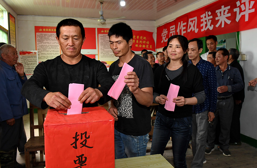 6月3日,福建省浦城县仙阳镇巽岭村党员群众就3年来村党支部委员的先锋模范、廉洁自律、工作业绩等方面情况展开评议。 新华社记者 张国俊 摄