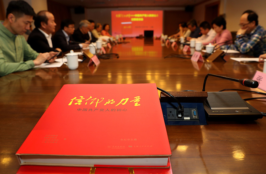 5月21日,《信仰的力量——中国共产党人的初心》出版座谈会在上海书城举行。 新华社记者 刘颖 摄