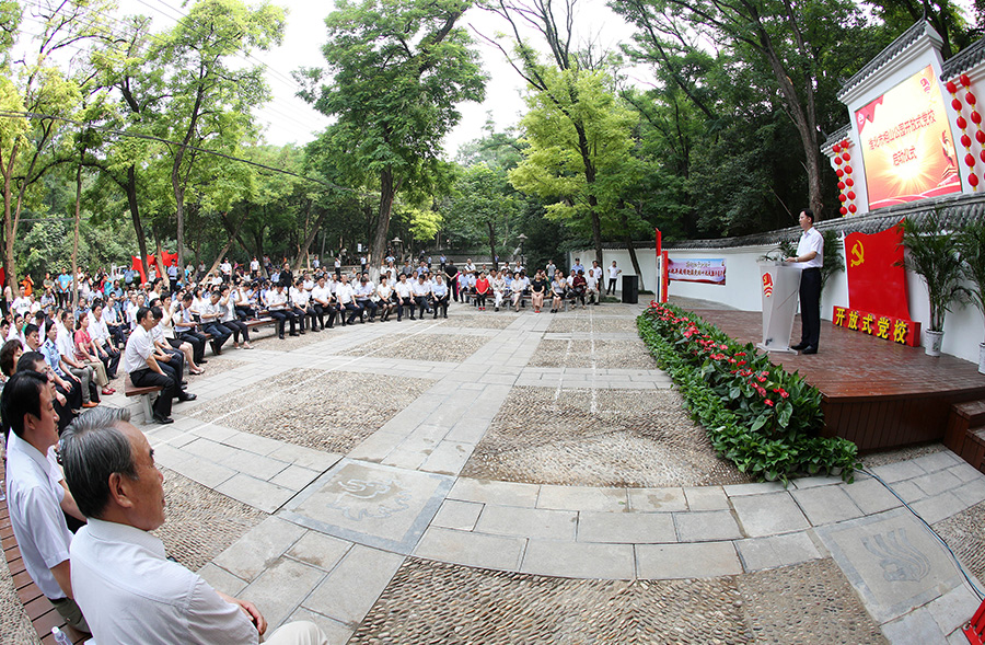 2017年6月28日,安徽省淮北市开放式党校在相山公园正式开启第一堂党课。 新华社发(李鑫 摄)