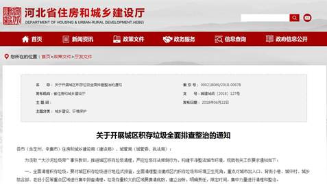 河北开展全面排查整治 确保生活垃圾全部得到无害化处理