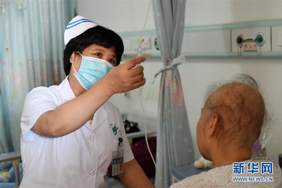 广西南宁市第四人民医院艾滋病科护士长杜丽群在病房查看病人用药情况(2017年9月18日摄)。