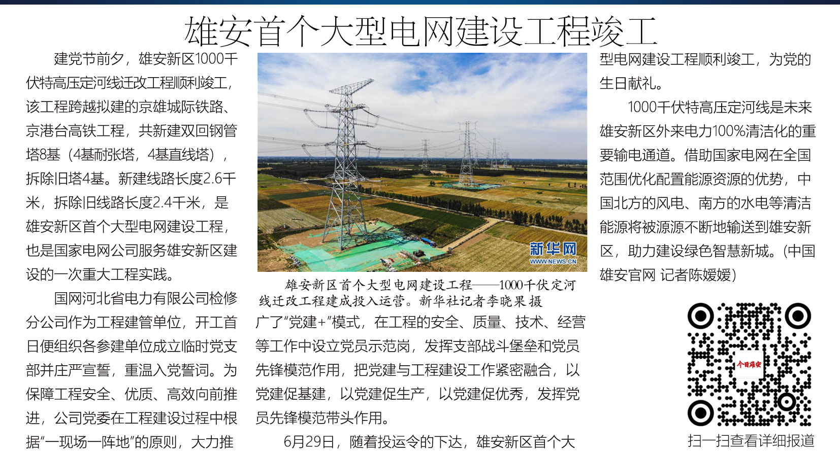 向党的生日献礼!雄安首个大型电网建设工程竣工