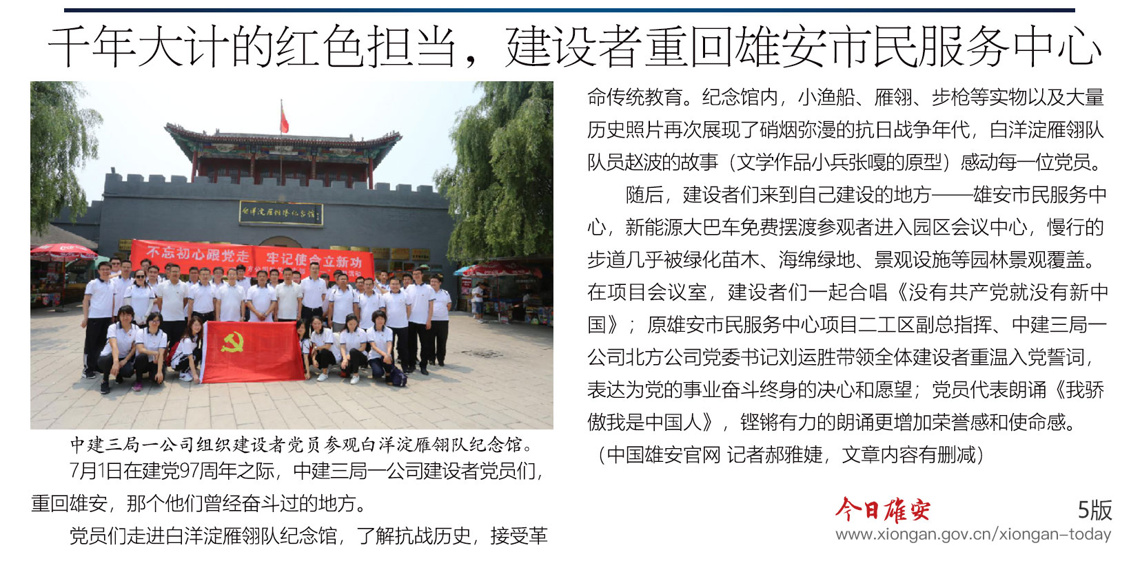7月1日在建党97周年之际,中建三局一公司建设者党员们,重回雄安,曾经奋斗过的地方。