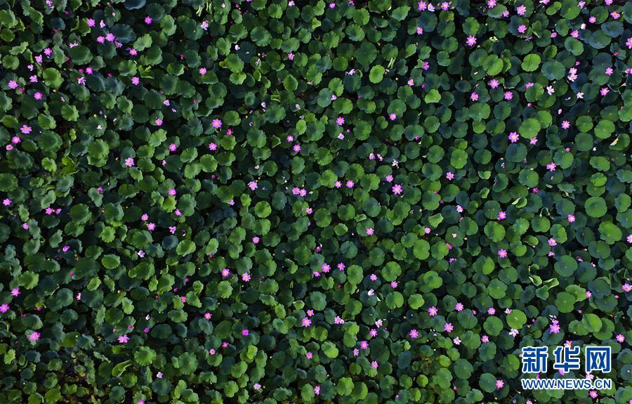 这是7月1日在河北省遵化市团瓢庄乡山里各庄村拍摄的荷塘(无人机拍摄)。