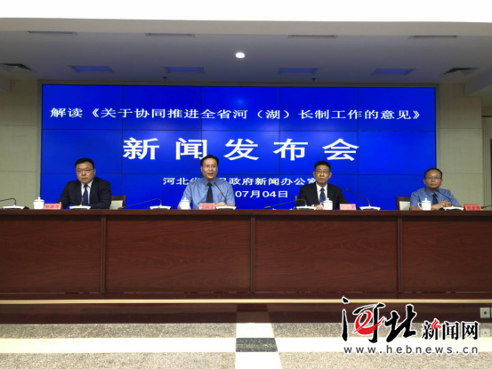 7月4日,河北省政府新闻办召开解读《关于协同推进全省河(湖)长制工作的意见》发布会。图为发布会现场。