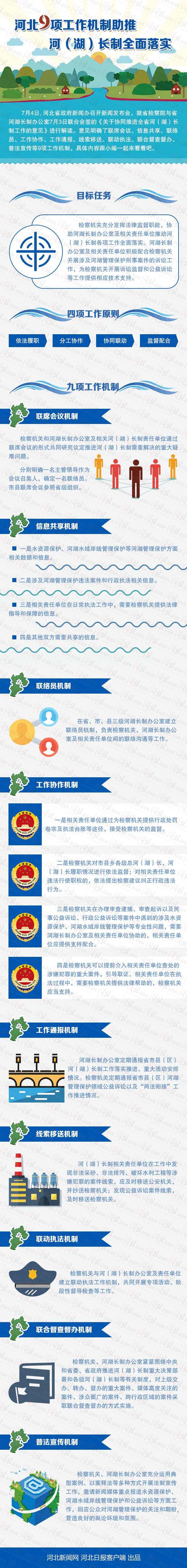 7月4日, 河北省政府新闻办召开新闻发布会,就省检察院与省河湖长制办公室7月3日联合会签的《关于协同推进全省河(湖)长制工作的意见》进行解读。意见明确了联席会议、信息共享、联络员、工作协作、工作通报、线索移送、联动执法、联合督查督办、普法宣传等9项工作机制,具体内容跟小编一起来看看吧。