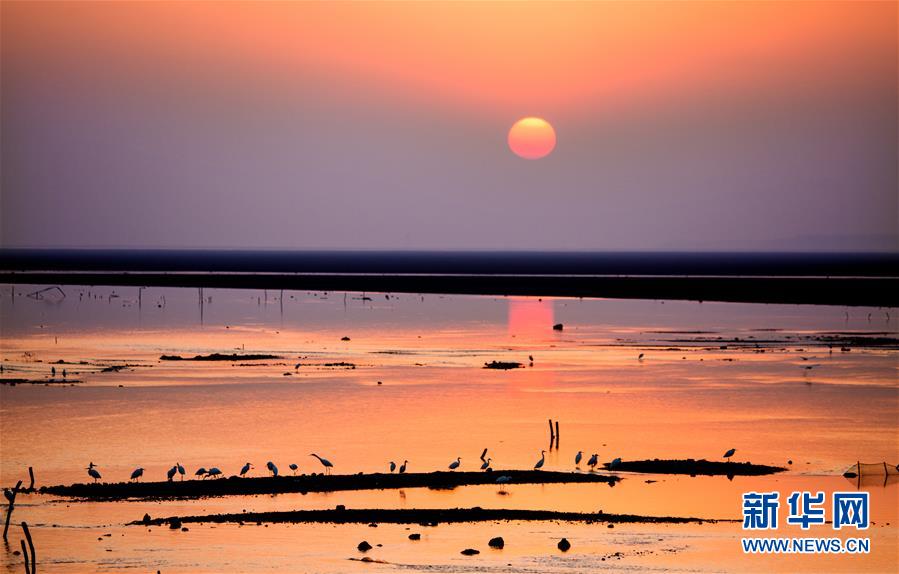 在江西省九江市都昌县拍摄的鄱阳湖湿地(2017年12月18日摄)。