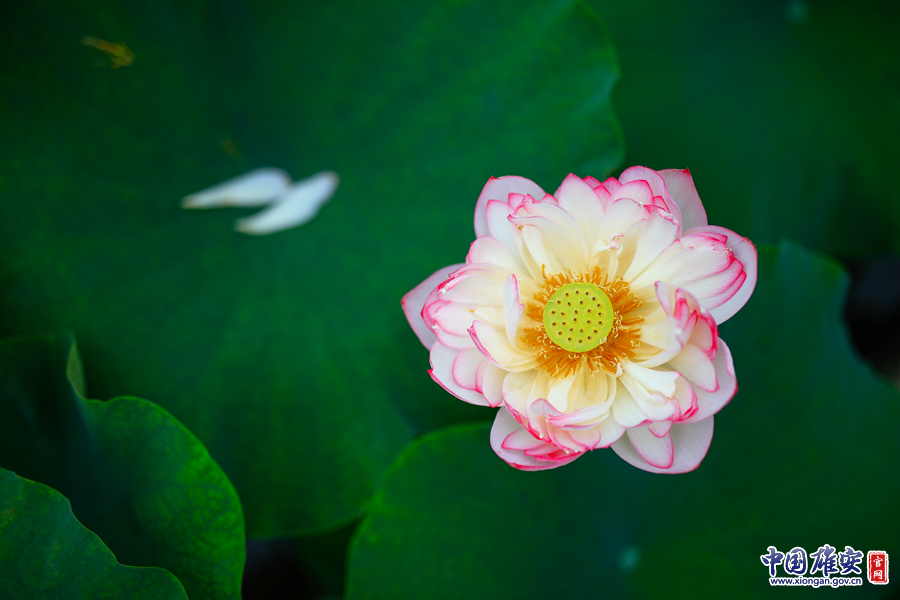 洁白如玉的花瓣用粉色勾勒花边,怀抱着小莲蓬和鹅黄蕊。记者毛鹤然 摄