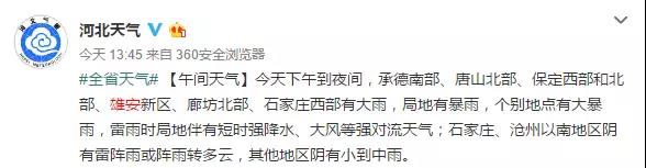 【渍涝气象风险等级】受较强降水影响,预计17日下午到夜间,承德南部、唐山北部、廊坊北部、雄安新区、保定大部、石家庄北部发生城市内涝和农田渍涝气象风险可能性较大,请注意防范。
