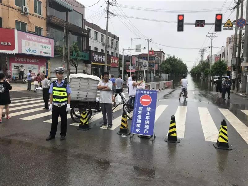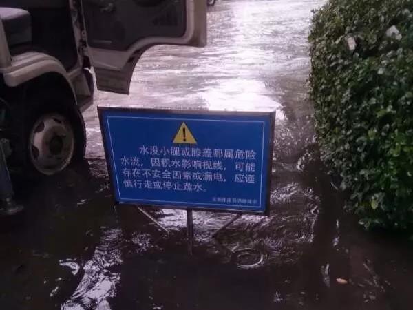 积水路段竖起了警示牌