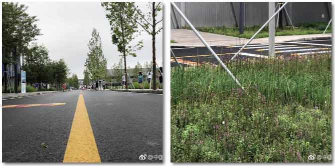 雄安市民服务中心引入“海绵城市”理念,在绿地、人行道设置透水砖,车行道设置透水沥青,停车位设置植草砖,使雨水在流动过程中经浅草沟的渗透,过滤后再进入雨水收集系统。通过树池、下凹式绿地丰富景观效果,增加近8000立方米的雨水滞蓄容积,实现园区雨污零排放。