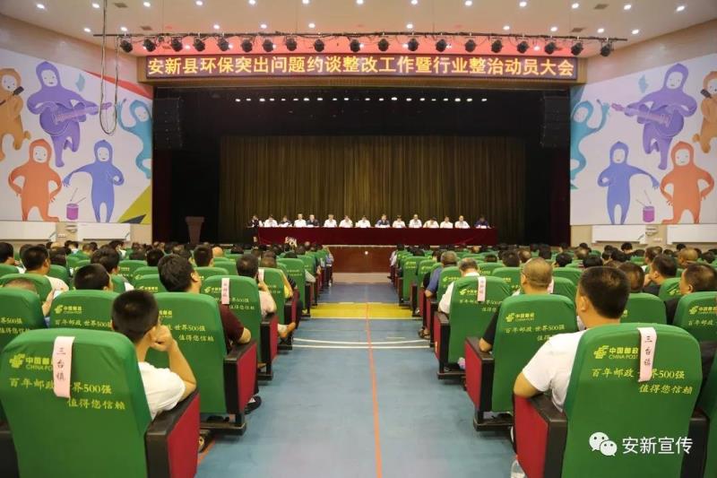 在安新县环保突出问题约谈整改工作暨行业整治动员大会上,安新县委书记杨宝昌要求,以高度的政治使命和责任担当,高标准高质量完成环境保护问题整改和行业整治工作;坚决按照“靶向施治、找准病根、对症下药、立行立改”的要求,把生态环境保护工作作为当前的最大的政治、最大的民生、最大的责任和最重要的工作,坚决落实,迅速行动,真办、实干,干出成效;务必要明责任,确保长效持续;全面强化督察反馈问题整改和传统行业整治工作的组织领导,强化监督考核和执纪执法问责,既当“宽肩膀”,又当“铁肩膀”,以高度自觉的责任意识和深入扎实的工作措施,全力推动生态环境保护持续改善。