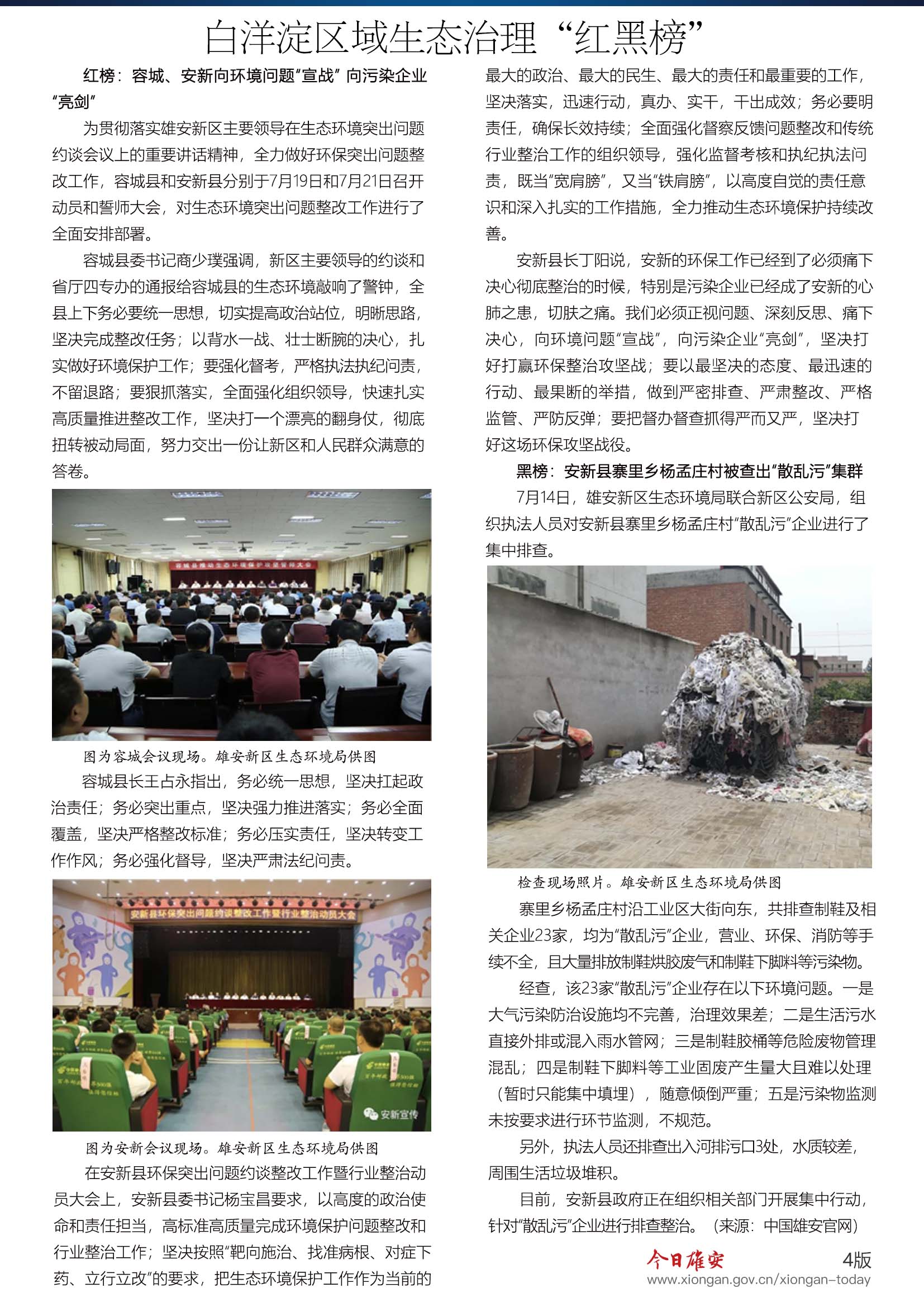从7月21日召开的安新县环保突出问题约谈整改工作暨行业整治动员大会上获悉,安新启动制鞋行业专项清理整治行动,白洋淀区域内所有制鞋企业一律取缔,彻底解决制鞋行业环境污染问题。