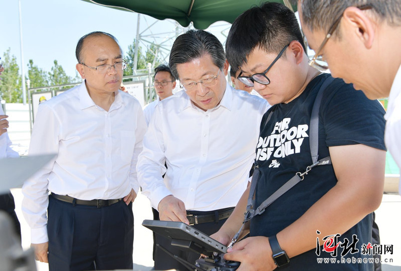 顶着炎炎烈日,冒着酷暑高温,王东峰、许勤等首先来到距离白洋淀2.5公里的唐河污水库,考察污水和垃圾治理情况。了解到污水库一期治理工程已经取得阶段性成效,王东峰、许勤给予充分肯定,要求加快施工进度,提高工程质量,并建立健全沿线污水和垃圾治理常态长效机制,加强绿化美化工作,持续改善白洋淀及周边区域生态环境。随后,王东峰、许勤实地考察白洋淀北堤北六村段、容东片区截洪渠一期工程,详细了解雄安新区防汛工作情况,要求新区、保定市和省直有关部门完善工作方案和应急预案,按照上拦、中蓄、下泄、内防的原则,加固防洪堤坝,加强分洪排涝,确保雄安新区汛期安全万无一失。