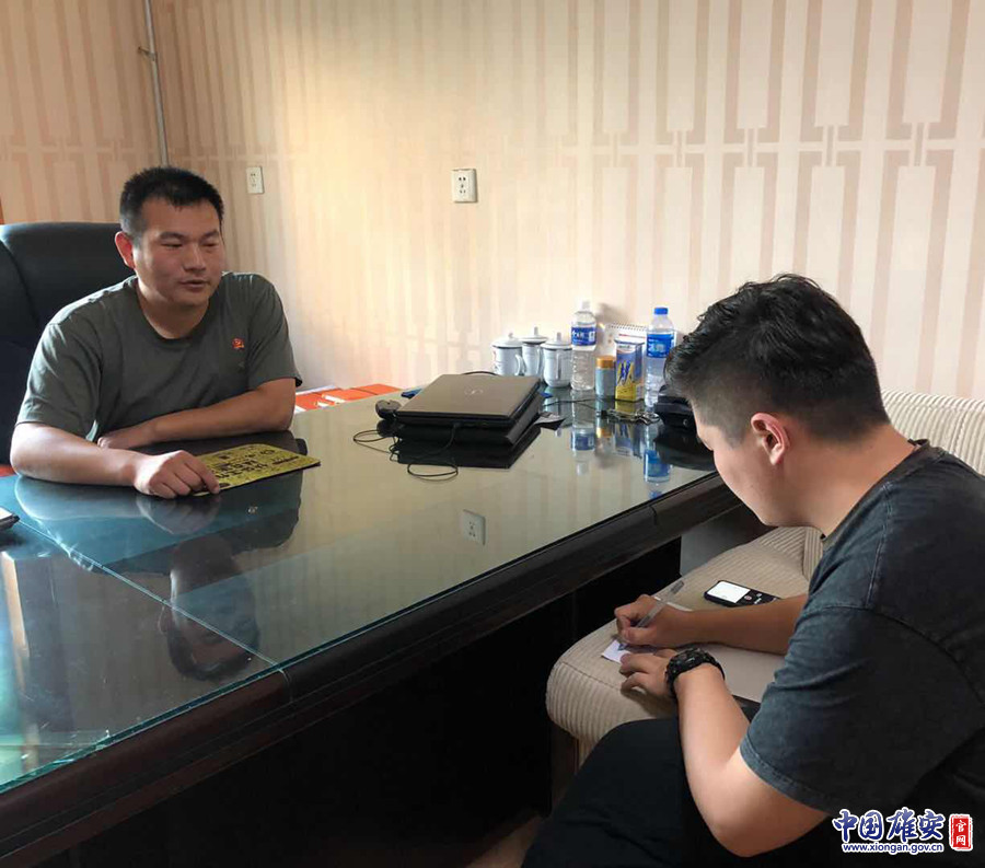 刘存(左)在接受中国雄安官网记者采访。实习记者栗杰 摄
