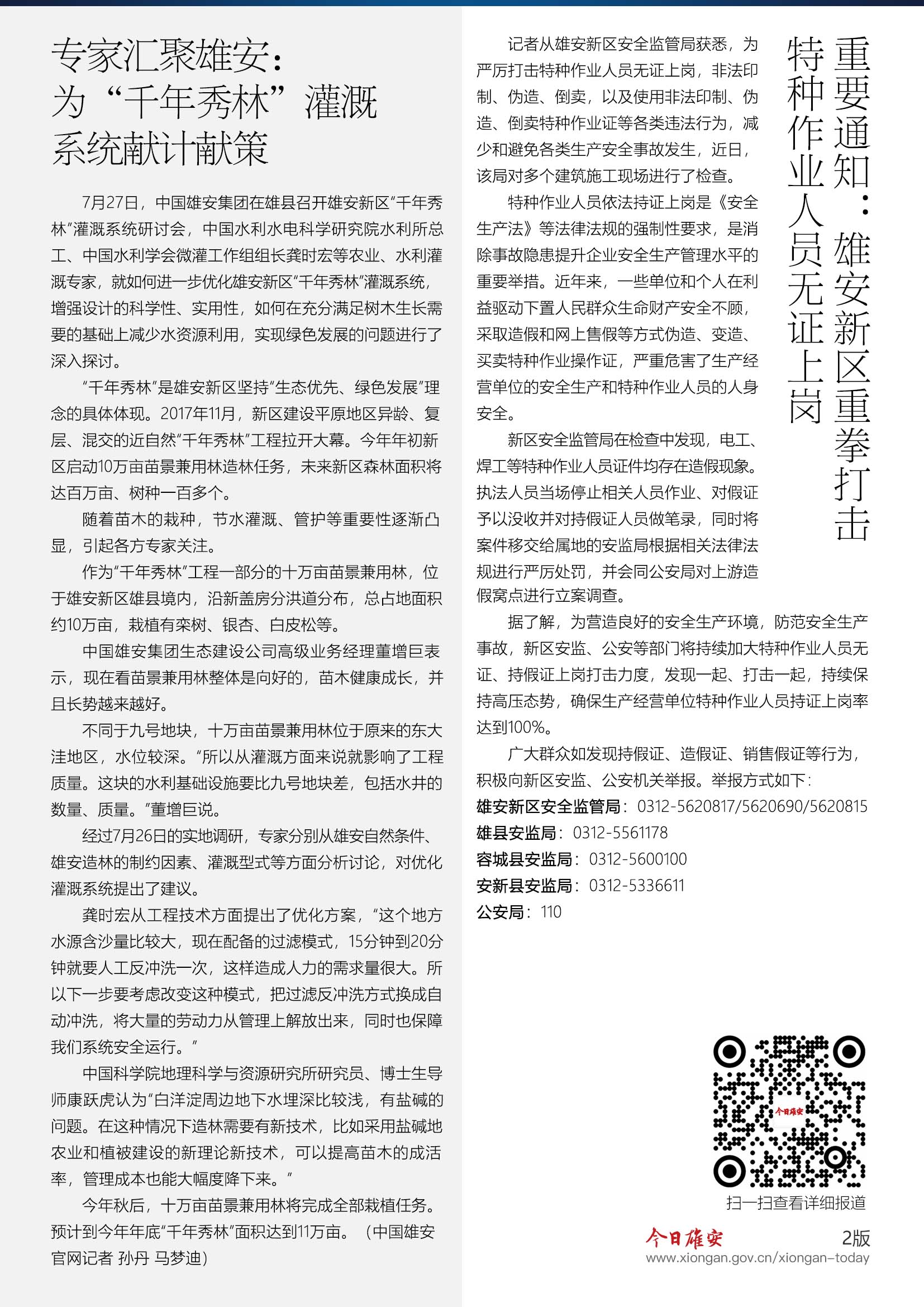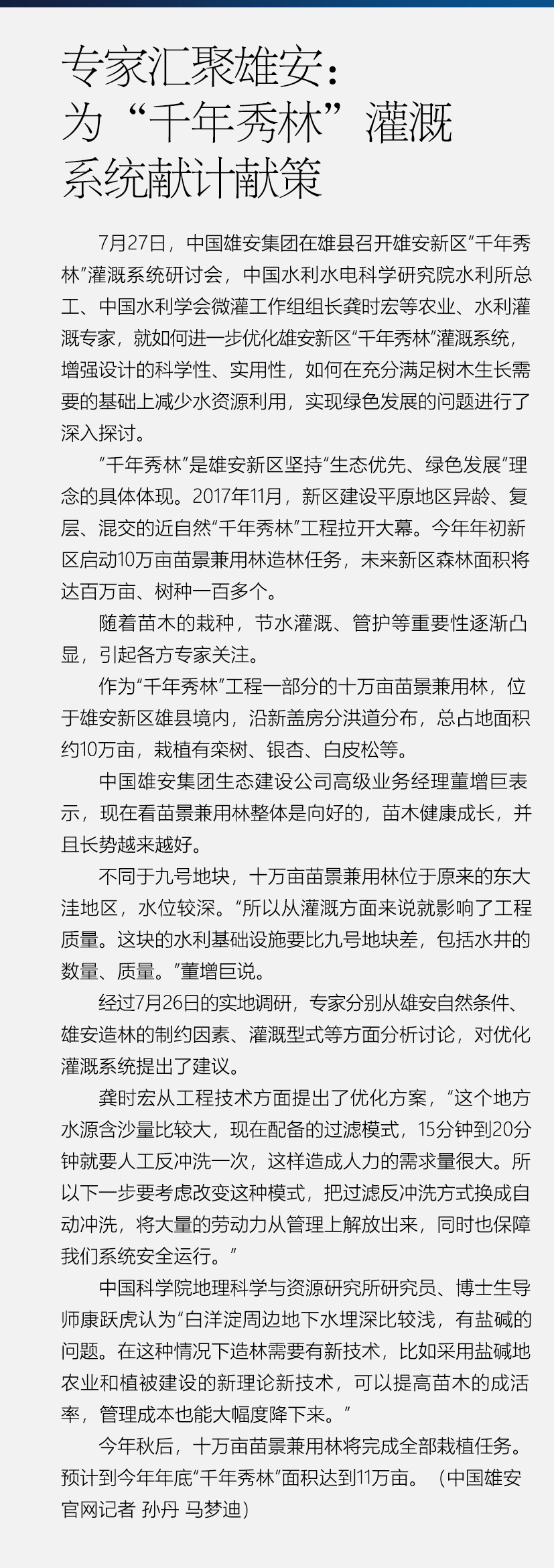 7月27日,中国雄安集团在雄县召开雄安新区“千年秀林”灌溉系统研讨会。