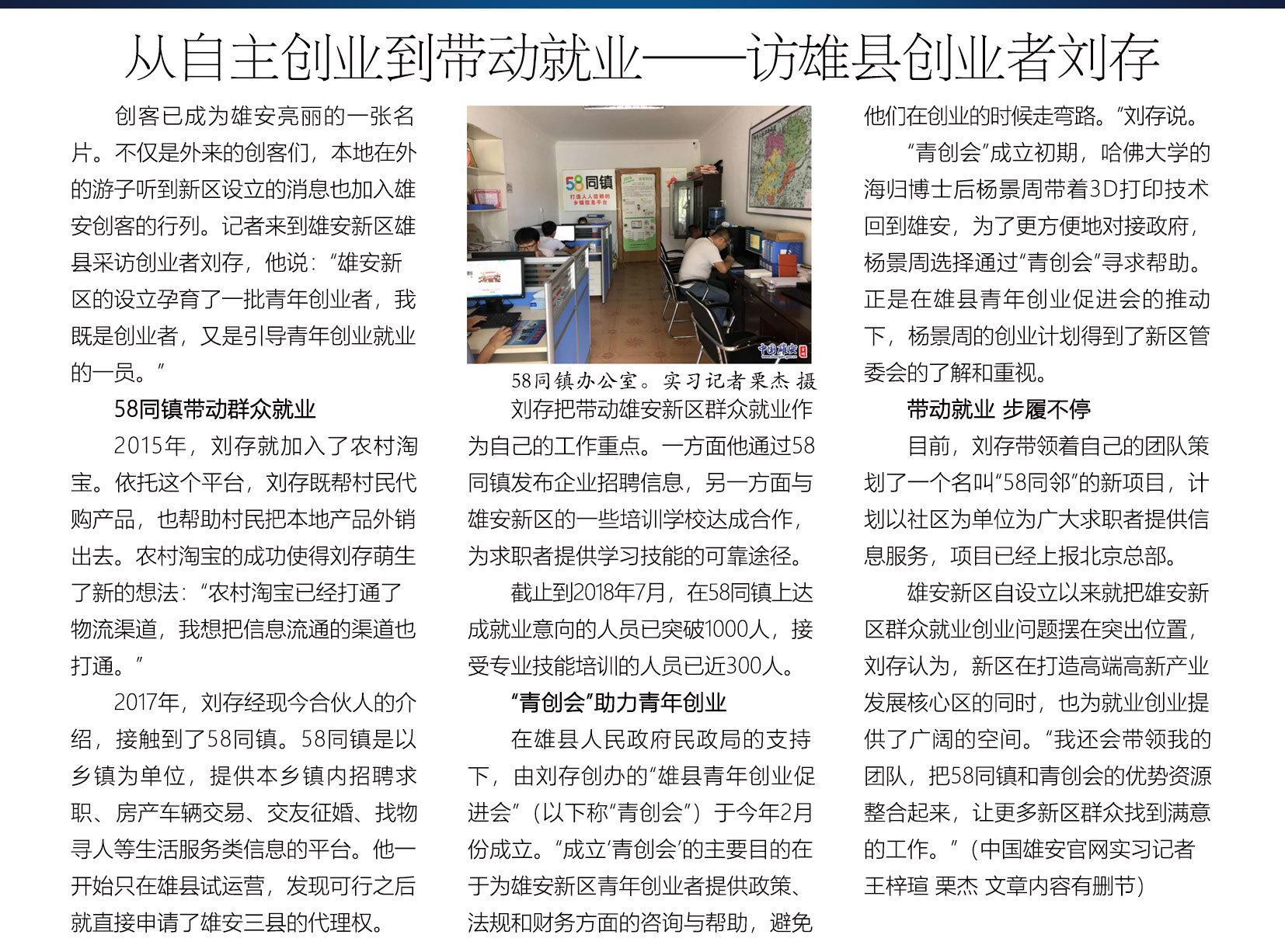 雄安新区自设立以来就把雄安新区群众就业创业问题摆在突出位置,刘存认为,新区在打造高端高新产业发展核心区的同时,也为就业创业提供了广阔的空间。