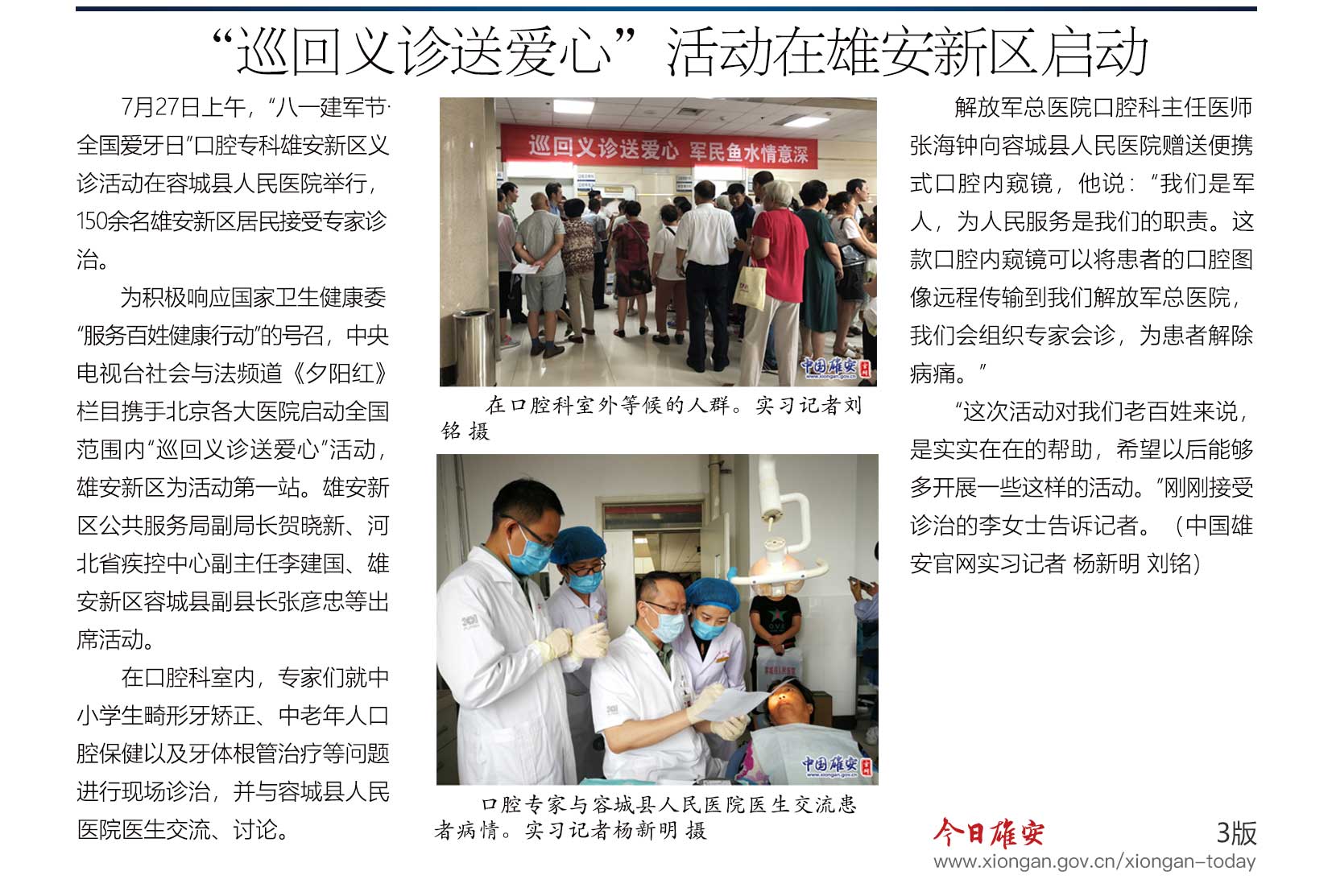 7月27日上午,“八一建军节·全国爱牙日”口腔专科雄安新区义诊活动在容城县人民医院举行,150余名雄安新区居民接受专家诊治。