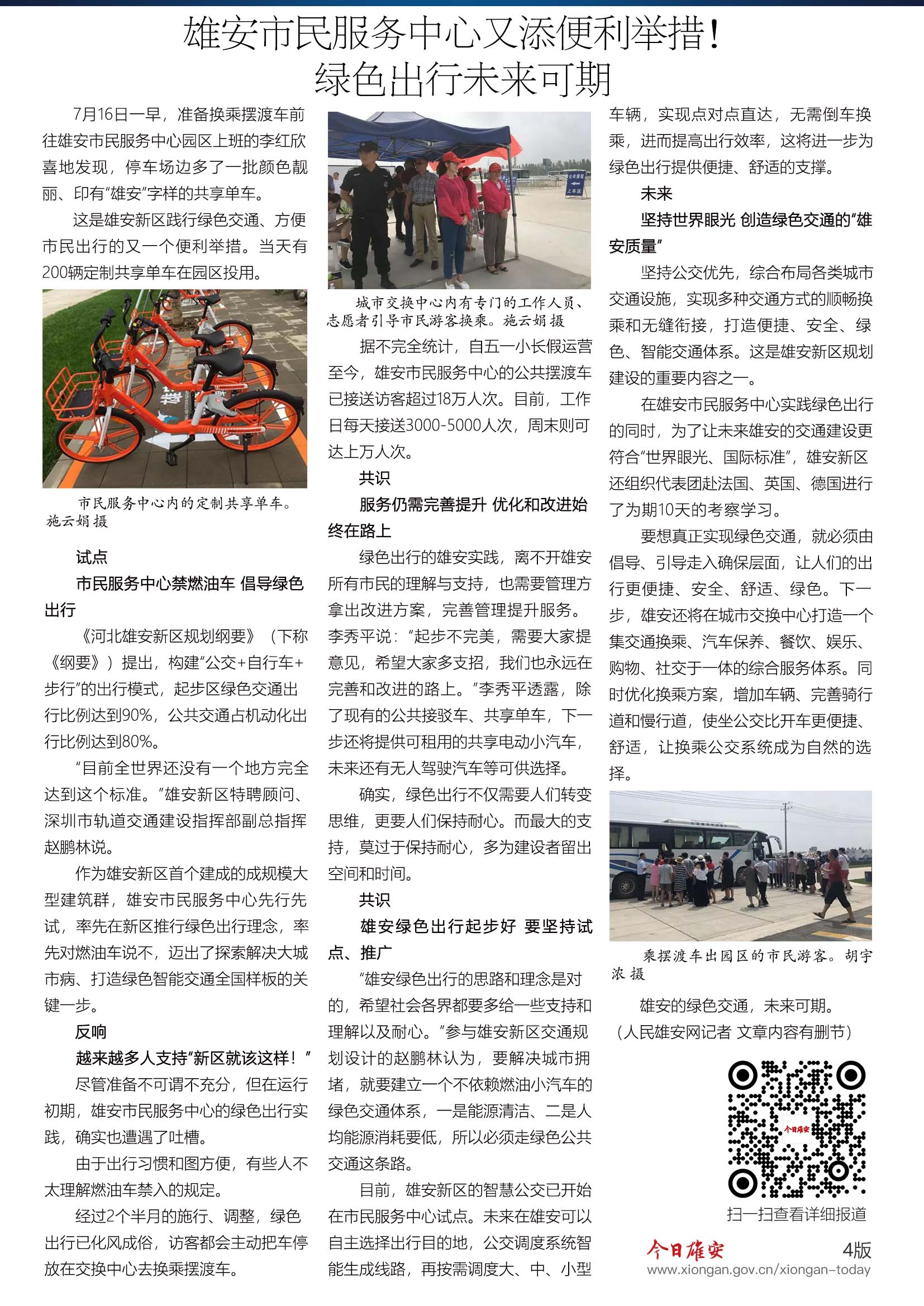 雄安市民服务中心又添便利举措!绿色出行未来可期