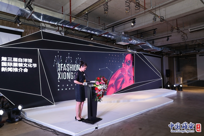 5月16日,容城县副县长陈婧在主持第三届白洋淀国际服装文化节的新闻推介会。记者毛鹤然 摄