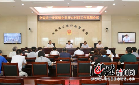 7月31日,河北全省进一步压缩企业开办时间工作会议召开,图为会议现场。(图片来源:河北省工商局官网)