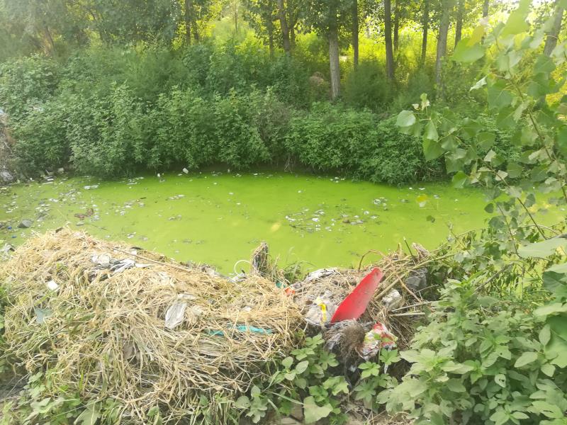 由于垃圾倾倒形成的纳污坑塘。雄安新区生态环境局供图