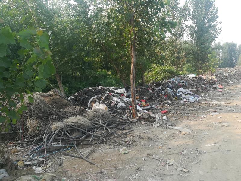 经了解,该点位原为周边村街随意倾倒生活垃圾堆放点,长期无人监管,经简易围挡后,暂时作为制鞋下脚料贮存点,但现场仍然较为杂乱,对土壤和水体产生污染。