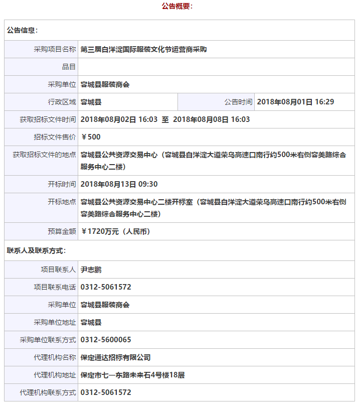 项目名称:第三届白洋淀国际服装文化节运营商采购