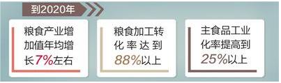 近日,河北省政府办公厅印发的《关于加快推进农业供给侧结构性改革大力发展粮食产业经济的实施意见》提出,到2020年,全省现代粮食产业体系初具规模,质量和效益明显提升,粮食产业增加值年均增长7%左右,粮食加工转化率达到88%以上,主食品工业化率提高到25%以上,大型粮食产业化龙头企业和粮食产业集群辐射带动能力持续增强。