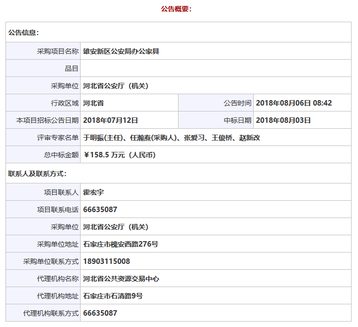 项目名称:雄安新区公安局办公家具
