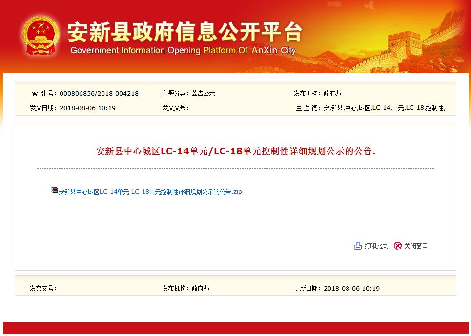 安新县中心城区LC-14单元 LC-18单元控制性详细规划公示的公告