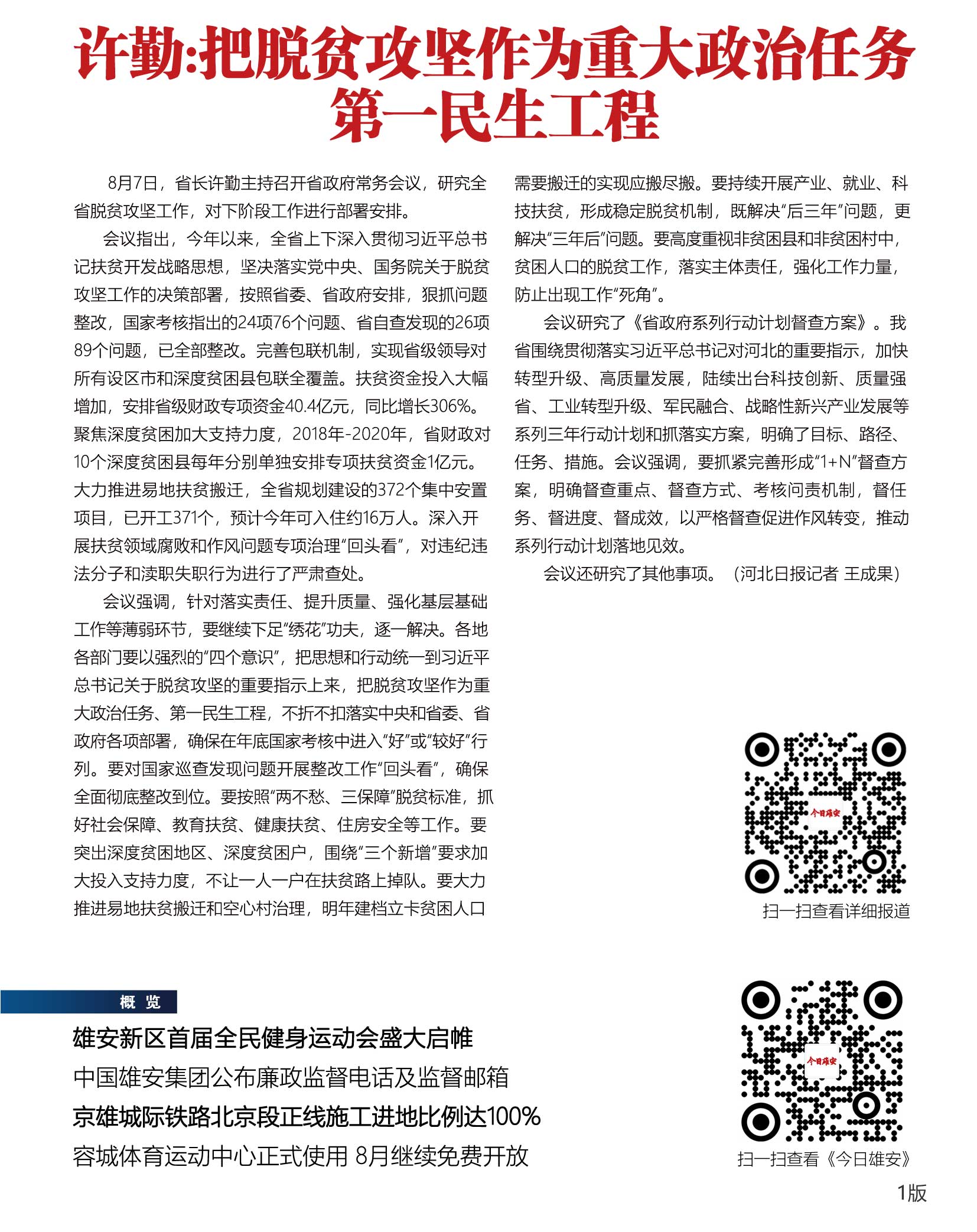 8月8日,省委中央巡视组反馈意见整改落实工作领导小组第二专项小组全体成员会议在石家庄召开。