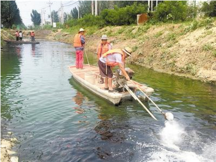 近日,安新县刘李庄镇雁翎沟污水治理引入市场化机制,来自石家庄的一家水污染治理企业,采用“原位修复、泥水同治”技术,消除底泥黑臭,激活土著微生物,恢复自然生态环境。 记者 张伟亚摄