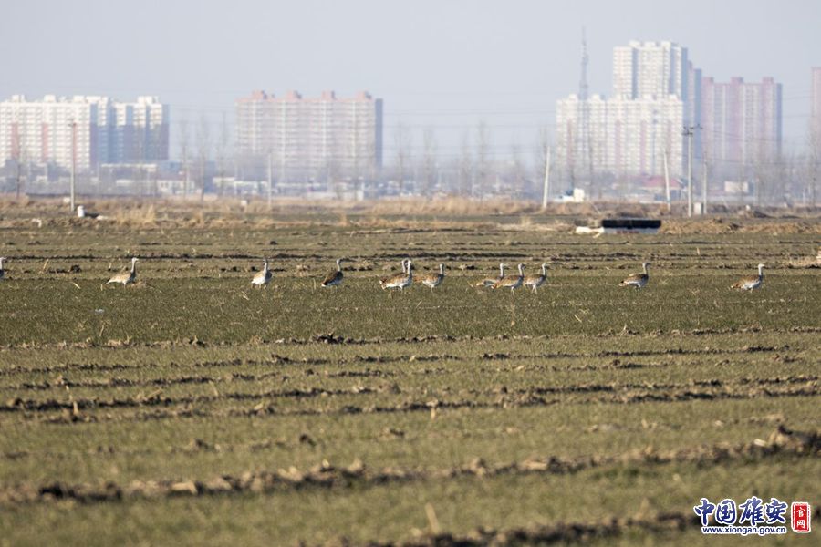 大鸨,俗称地鵏,每年都观测到四五十只在白洋淀过冬。它的个子比家鹅还大,是陆地上能够飞起来最重的鸟。据2010年统计,仅有800只左右在我国北方地区越冬,属于国家一级重点保护动物,它的珍贵程度就如同丹顶鹤、大熊猫和东北虎。贺友顺 摄