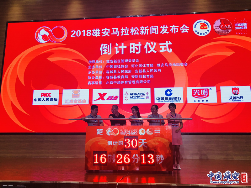 参会领导、嘉宾开启2018雄安马拉松倒计时。实习生王梓瑄 摄