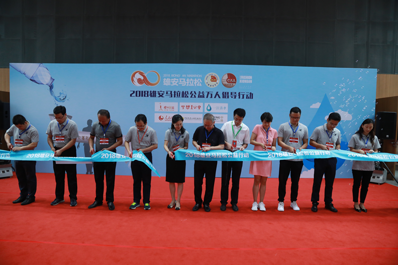 参会领导、嘉宾出席会前“公益万人倡导行动”剪彩仪式。雄安马拉松组委会供图