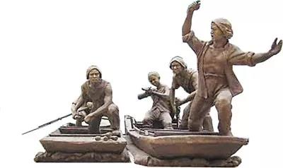 白洋淀雁翎队纪念馆内的雕塑。资料片