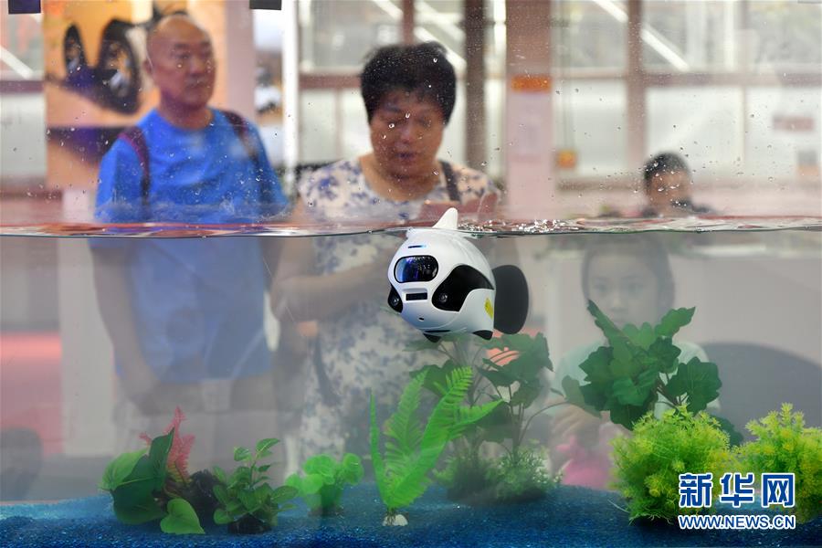 8月15日,参观者在博览会上观看一款仿生水下摄影机器人。 当日,2018世界机器人大会在北京亦创国际会展中心开幕。大会以“共创智慧新动能,共享开放新时代”为主题,由论坛、博览会、大赛、地面无人系统活动四大板块组成。 新华社记者 李鑫 摄