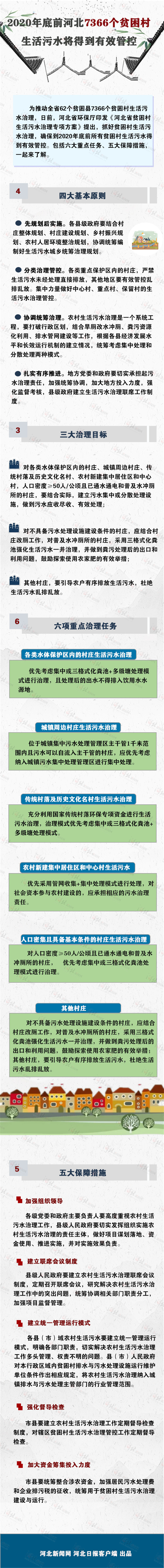 为推动全省62个贫困县7366个贫困村生活污水治理,日前,河北省环保厅印发《河北省贫困村生活污水治理专项方案》提出,抓好贫困村生活污水治理,确保到2020年底前所有贫困村生活污水得到有效管控。包括六大重点任务、五大保障措施,一起来了解。