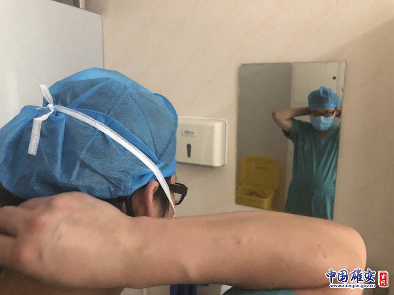 方宏伟正在为手术换装。实习生王梓瑄 摄
