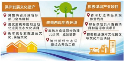 不久前,在廊坊举办的通武廊协同创新发展论坛发布了2018年12项重点推进事项。其中,北运河生态文化工程尤为引人瞩目。据悉,三地将研究制定通武廊大运河文化带规划协同机制,统筹规划三地北运河生态文化项目,保护好、传承好、利用好运河文化等。8月初,邯郸市也专门召开大运河沿线非遗保护工作座谈会,并组织专家学者沿邯郸段大运河沿线的临漳县、魏县、大名县和馆陶县等进行实地走访。衡水市通过“漕运印象、非遗表演、码头名人”等主题活动,充分发掘运河漕运文化、民俗文化,并在阜城县码头镇魏圈村建成全国首家以运河文化为主题的村级博物馆。