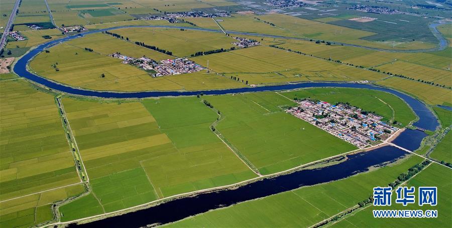 初秋时节,河北省唐山市海港经济开发区王滩镇的稻田构成一幅美丽的田园画卷。 新华社记者 杨世尧 摄