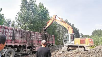 近日,安新县工业固废治理项目的中标企业工作人员,在该县安州镇白庄村村南一处固体废物存储点装载废线皮子等固体废物。记者 原付川摄