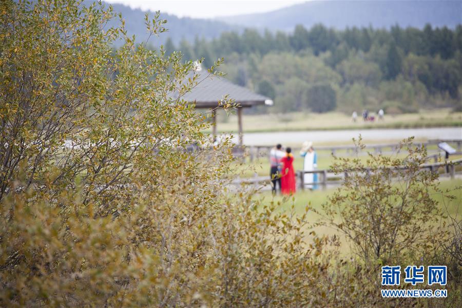8月26日,游客在塞罕坝国家森林公园内游览。 初秋时节,位于河北省承德市的塞罕坝国家森林公园晨雾缭绕,秋意渐浓,美景如画。 新华社发(刘满仓 摄)