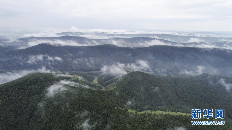 这是8月26日拍摄的塞罕坝国家森林公园(无人机拍摄)。 初秋时节,位于河北省承德市的塞罕坝国家森林公园晨雾缭绕,秋意渐浓,美景如画。 新华社发(刘满仓 摄)