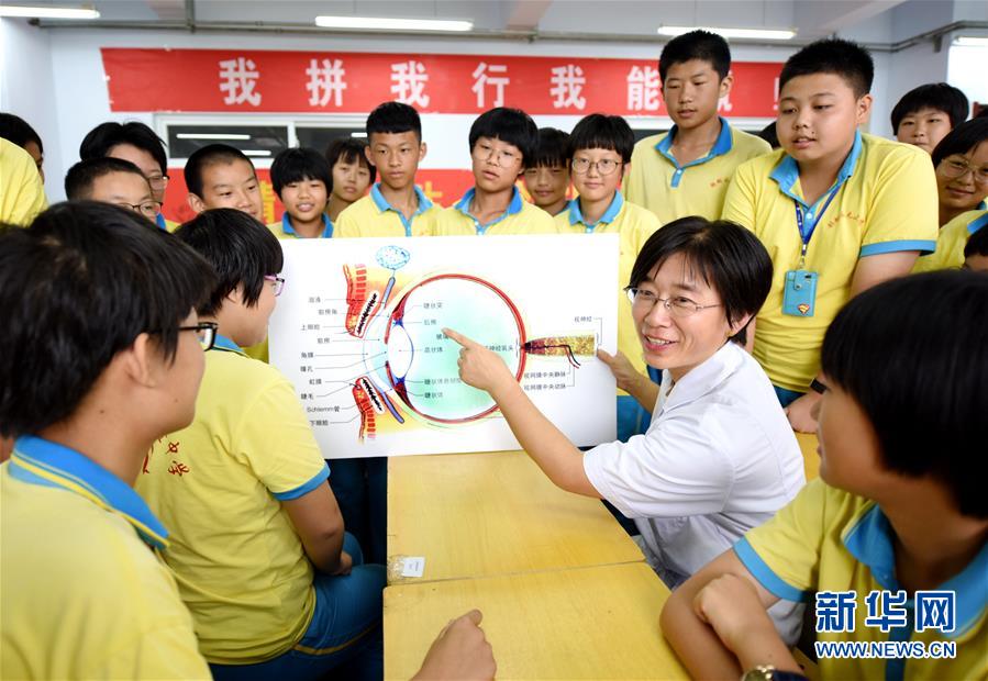 9月1日,医务人员在衡水志臻实验中学为学生讲解眼保健知识。